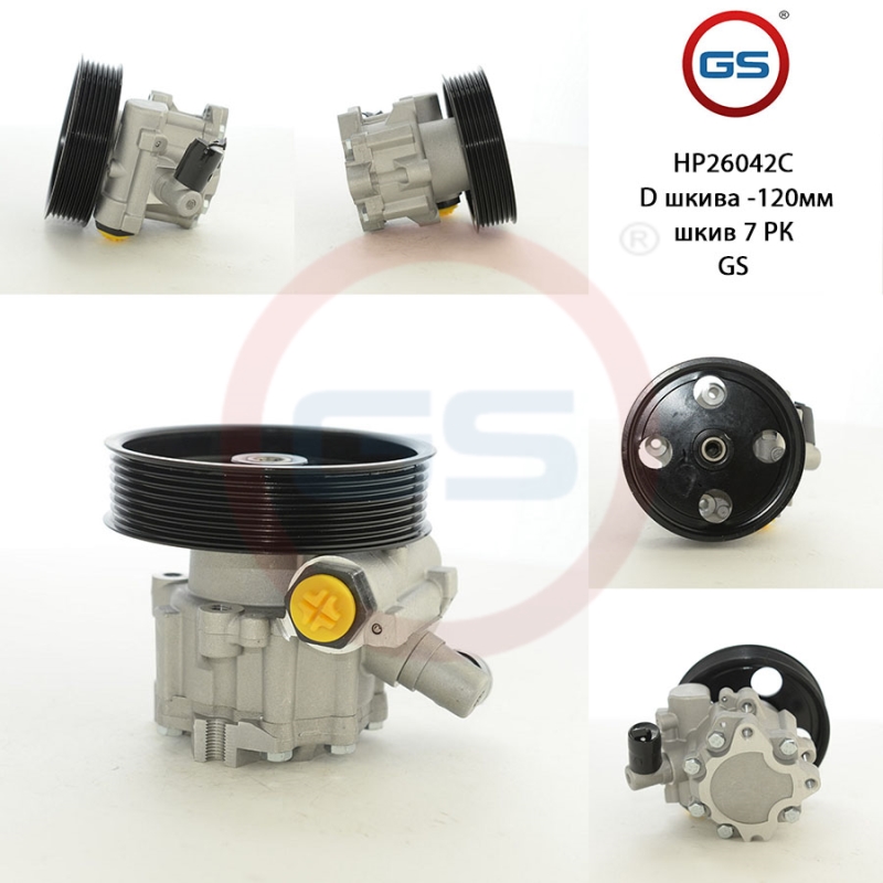 Насос ГУ. Шкив 7PK. Диаметр шкива 120мм. Выход высокого давления на резьбе. Используется только для автомобилей с дизельним двигателем 3.0. GS