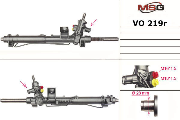 Гидравлическая рулевая рейка с шарниром крепления кулисы - штырь и 2-мя точками крепления. TRW